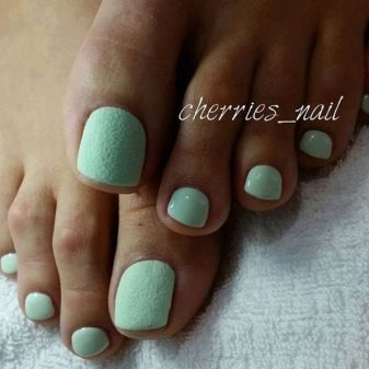 Flockpulver har mange nuancer, så en kvinde kan skabe en spektakulær pedikyr til specifikt tøj eller endda et aftenantøj.