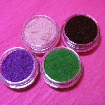 - Flokkepulver. Et sådant stof giver dig mulighed for at skabe en speciel fløjlsagtig coatingeffekt. At gøre det er ganske enkelt: du har brug for selve flokpulveret, som kan købes i en specialforretning. Det påføres finish, men tørres ikke under lampen. Derefter tørres belægningen i den specificerede tid (normalt et eller to minutter, hvilket afhænger af lampetypen og den anvendte finish).