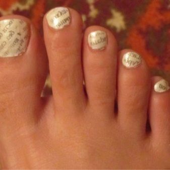 Om ønsket kan avispedikurer varieres med andre dekorationer. For eksempel kan du sætte et klistermærke oven på bogstaver, der bringer noget specielt og unikt til designet.