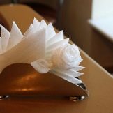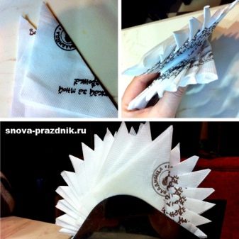 - Kronen. Et af de enkle skemaer, der er baseret på alle de samme trekanter på ni foldet fra servietter. Tre stykker lægges med kanten indad med en fold, og tre lægges til midten. Du kan tage mere, den vigtigste betingelse er symmetrien i tænderne.