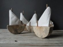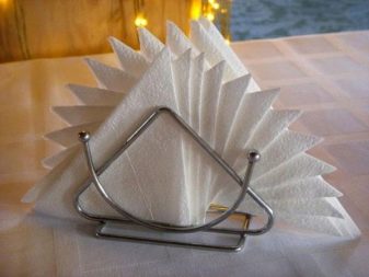 - Hvis selve serviettholderen har en dekorativ værdi, kan du blot fylde den med diagonalt foldede servietter. For eksempel i formen sejl.