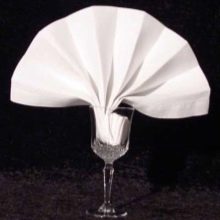 Servietter kan foldes i en plastik- eller glaskop eller en anden rund lav beholder med en bred hals, som følger: