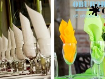 Ud over den dekorative funktion har servietter en meget vigtig rolle - at holde dine hænder og ansigt rent. Uanset hvor smuk sammensætningen af papirprodukter så ud, skal du om nødvendigt bruge den. Som regel er de kombineret med stofservietter, der er lagt på dine knæ, mens papirpapirer placeres på bordet i specielt designet stativer.