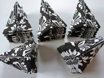 - Fuglen. Serviet skal foldes diagonalt, inden det bøjes indad to modsatte hjørner. De resulterende emner placeres ikke helt i hinanden. En anden skal foldes i en strimmel ca. en centimeter bred, startende fra hjørnet og danne et hoved. Det er bedre at bruge papirprodukter i forskellige farver for at få fuglen til at se mere elegant ud.