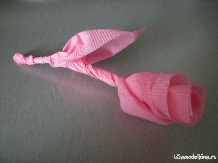 - Den bøjede strimmel vil være en knopp, den skal foldes, og resten skal vrides for at danne en stilk.