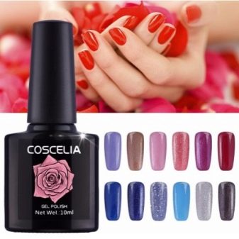 Virksomheden tilbyder en lang række farver., blandt hvilke alle selv kan finde den mest foretrukne mulighed. Coscelia gel polish er meget velegnet til dem der udfører manikyr alene. I øjeblikket tilbyder webstedet 40 farver, inklusive matte og blanke nuancer. Prisen vil overraske enhver bruger.