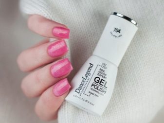 Hvis mesteren bruger Dance Legend Sahara Crystal lak, får overfladen sin egen skygge fyldt med mikroskopiske gnister. En sådan manikyr ser ikke trodsig ud, mens den er ganske attraktiv. Alle gelpoleringsmidler, der indeholder skinnende partikler, danner en helt flad overflade på neglen, da spanglerne er meget små og bløde. Derfor skal man ikke være bange for ubehag såvel som sandsynligheden for at fange noget. Dance Legend tager sig af kundernes bekvemmelighed.