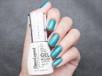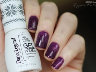 Når vi taler om nye produkter, skal det bemærkes holografiske gelpoleringer Dance Legend. De har en gelé-lignende struktur, godt pigmenteret. Masters anbefaler at anvende dem i 2 lag. For at fjerne sådan lak skal du først bruge en neglefil, da specialprodukter uden at beskadige belægningen muligvis ikke har den ønskede effekt.