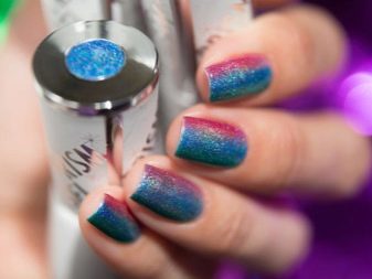 På tilstrækkeligt lange negle opnås den ombre effekt. Derudover er der termiske lakker med en gradient på 3 farver.