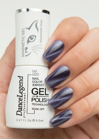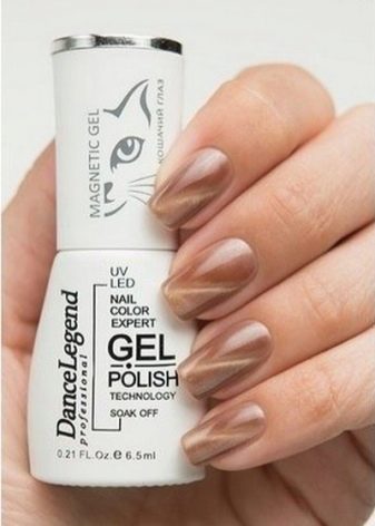 Hvad angår magnetiske lakker, de indeholder mikroskopiske metalpartikler, der bevæger sig ved hjælp af en magnet. Materialet påføres på samme måde som de andre, men på samme tid inden tørring er det nødvendigt at bringe magneten og holde den i et par minutter for at danne det ønskede mønster.