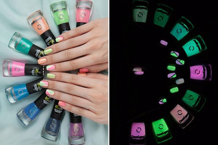 Dance Legend tilbyder trendy kvinder, elskere af diskoteker og natklubber en speciel række lakker, der lyser i mørke. De er i stand til at akkumulere lys og derefter give det i et mørkt rum. Dette produkt er helt sikkert og er oprettet ved hjælp af den nyeste teknologi. En ubestridelig fordel er, at det for negle at akkumulere lys er nok at forblive i skarpt lys i kun ca. 10 minutter, men den modsatte virkning vil vare cirka en time.
