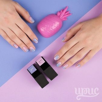 - Gelbelægningen er tynd. Dette eliminerer effekten af en falsk søm, da manikyren ser naturlig og pæn ud.