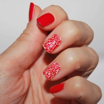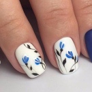Hvad angår de faktiske manikurtegninger, der kan oprettes ved hjælp af hvid gelpolver, er deres emne forskellig. Derudover afhænger det af, om selve gelpolveret betragtes som baggrunden eller malingen i dette tilfælde. Hvis det bruges som maling, tegner de alle slags blonder og blonder, net, mehendi, prikmønstre. Derudover er det en fantastisk farve til blomster temaer, forskellige monogrammer. Hvid lak udfører et konturslag af de oprettede mønstre.