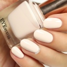 Derudover går hvid farve godt sammen med farvede pigmenter, så du kan udføre en smuk strækning både lodret og vandret og inde i enhver figur på accentnaglen på en manikyr (pedikyr). Det kan bruges som grundlag for den yderligere anvendelse af akrylpulver, hvorved der skabes en original volumetrisk struktur af neglen. For slørteknik skal du vælge en gennemsigtig struktur, "brudt glas" har brug for en blank lak.