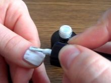 Så at lakken ikke flyder over sidevalserne og neglebåndet, påføres den med et tyndt lag. I et halvt minut fra påføringstidspunktet spredes det jævnt over hele neglens område og vil derfor ikke stribe. Umiddelbart efter farvning er det uønsket at sende neglen til tørretumbleren. Da laget vil være lidt klistret efter farvning, skal du ikke røre det med dine hænder. For at gøre linjen med farve ved bunden af neglen glat, skal den males med en tynd manikyrbørste.