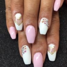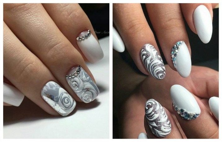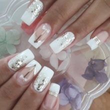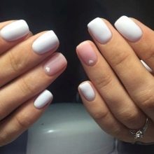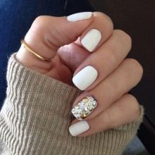 Endelig bringer vi opmærksom på flere eksempler på den vellykkede anvendelse af hvid gelpolver til design af manikyr.