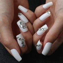 Hvis du kan lide sten, kan du indlægge accentnagler med en manikyr ved at kombinere sten med rhinestones eller bouillon.