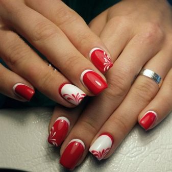 Rødhvid, vinrød kontrast og en kombination med bordeaux betragtes i dag som en af de trendende blandinger ved hjælp af hvid gelpolver. Det samme kan siges om brugen af hvidt i et design med sølv- og gråhvid kontrast.