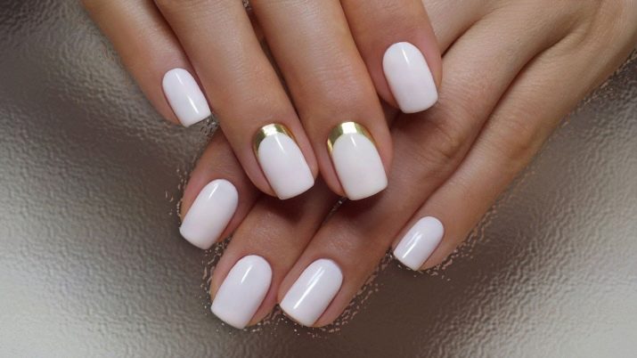 Hvid gel polish er traditionelt tildelt palettens universelle farver. Det går godt med mange kontrasterende nuancer, ser godt ud på negle i forskellige former. Denne farve er dog ganske krævende på længden af neglene. Det ser mere æstetisk ud på mellemlange negle. Det forkorter visuelt og plader korte plader, hvilket er vigtigt at overveje, når det ikke er længe nok.