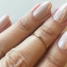 I modsætning til franskmændene står en månemanikyr, og vi kan sige, at han endda træder på hælen på sin bror. På grund af dens alsidighed bliver beige farver grundlaget for farvede eller gennemsigtige huller. Nu på toppen af neglekunst begyndte han igen at få fart.