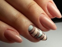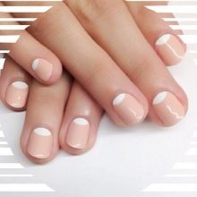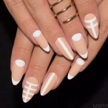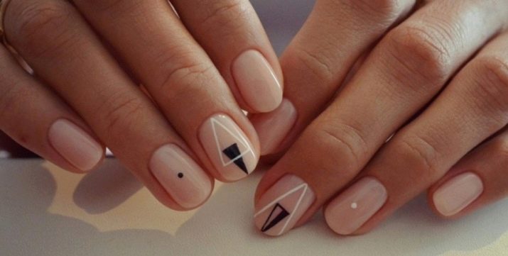 Sæsonens hit er manikyr med geometri. Der er ingen begrænsninger. Enhver nuance af brun, beige eller nøgen tages som basis. Endvidere tegnes (eller limes) strimler på neglen, som kan være brudt, lige (vandret, lodret), forskellige trekanter, cirkler, punkter, bølger, stiplede linjer, kæder og meget mere.