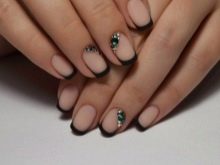 Foruden tegninger kan du nemt supplere din manikyr med andre midler, f.eks. Rhinestones. Dette design er velegnet til en aften, hvor du skal skinne og være på toppen.