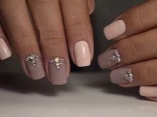 Vær ikke bange for at anvende rhinestones, selvom du arbejder på kontoret. Begræns dig selv til kun et par fingre for at anvende krystaller. Et par små krystaller vil være nok til at diversificere manikyren, men samtidig ikke overbelaste den med unødvendige detaljer. Og du vil være uimodståelig.