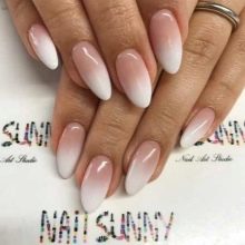 Overgangen fra en farve til en anden så altid fordelagtig ud på neglene, forlængede neglene og gav dem nåde. Her kan du kombinere både mørke farver og lyse farver og skabe en smuk gradient, der passerer gennem hele neglen.