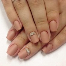 Du kan kun vælge en mat manikyr og diversificere den med en slags mønster eller rhinestones eller den samme geometri.