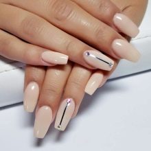 Beige farve - elegant, stram, smuk. Dette er en klassiker, der aldrig går ud af stil. Denne nuance ser pæn ud på negle i forskellige længder, den passer absolut til enhver form eller struktur på neglen. Det forkorter ikke neglen, men gør lange negle mere elegante. Derfor elsker alle at lægge beige farve på deres negle.