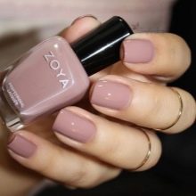 Nuancer af denne farve er naturlige, ikke for lyse og ekstravagante, behagelige at se på. Hænder med en så enkel og naturlig manikyr ser velplejet og pæn ud.