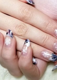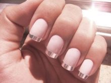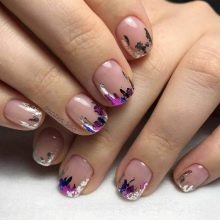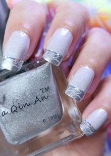 En af de nyeste trends i oprettelsen af fransk manikyr er stilen med brudt glas. Denne effekt kan oprettes ved hjælp af farvet folie eller holografiske klistermærker. Det ser lyst og udtryksfuldt ud på lange negle af enhver form.
