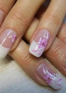 Specialister i neglekunst tilbyder asymmetrisk farve af spidsen med en hvid tone med tilsætning af et lille mønster eller blomstermønster.