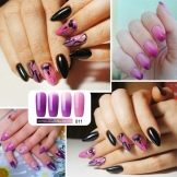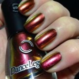 For eksempel kan du udføre et usædvanligt design af tre farver på neglene ved hjælp af produktlegenden Dance legend. En sådan løsning ser smuk ud på hånden, og når temperaturen ændrer sig, skabes spektakulære overgange med tre hovedfarver og to overgangsfarver.