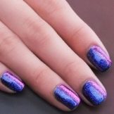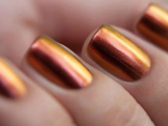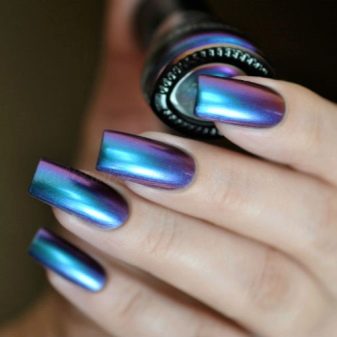 "Kameleoner" ser bedst ud på forholdsvis lange kvindelige negle. Dette er forståeligt: ved en lang søm varierer temperaturen ved basen og ved dens ende, og på samme tid dannes en glat, blid overgang af farver.