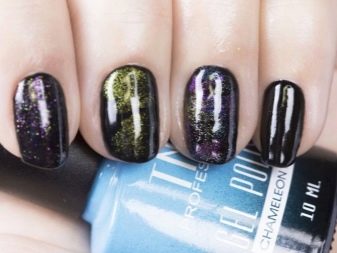 I skønhedsverdenen vises med jævne mellemrum nye samlinger af lakker og gellakker med termiske effekter og andre variationer på temaet "kamæleon". På Internettet kan du finde et stort antal designmuligheder. Lad os som eksempel nævne nogle ikke-standardiserede og effektive ideer til manikyr ved brug af "kamæleoner".
