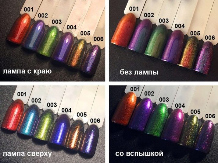 Gelpoleringer, der ændrer farve, når de ændrer lys- eller synsvinkleniveauet, er populære blandt piger, der ofte besøger natklubber eller på ferie. Disse nuancer skifter under påvirkning af et neonlys eller en strobe, en lys sol. I hverdagen ser virkningen af brugen af sådanne "kamæleoner" ikke så imponerende ud.