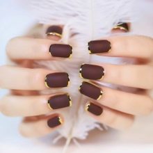- Mat tekstur. Velvet manikyr er på mode denne sæson. Du kan bruge specielle belægninger eller den passende top. Det er den matte overflade, der giver farvemætning og dybde, men du kan med succes kombinere den med blanke elementer. En lignende teknik vil se spektakulær ud både i én farve og med en kombination af flere nuancer. Vælg smaragd, blå, lilla toner eller dem, du bedst kan lide.