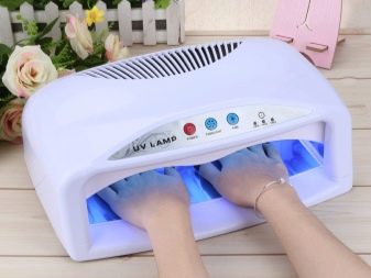 Oprindeligt påføres basen på neglene. Hun er ansvarlig for vedhæftningen af belægningen på overfladen af neglepladen. Derefter tørrer fingrene godt i en ultraviolet lampe. Derefter kan du påføre farvet shellak.
