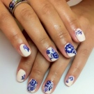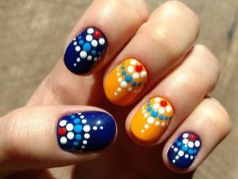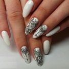 Moderne mønstre er mehendi og etniske ornamenter. Selvom skønhedsbloggere endnu ikke er kommet til den konklusion, at sådanne prints ikke har brug for farvelægning for høj status, foretrækker professionelle mestre monofoniske ornamenter, der ser imponerende ud på kontrasterende grundlag. Abstrakte mønstre i form af pletter af lak ser smukke ud. Hvad angår tegninger i indiske temaer, kan dette tema bruges i design, uanset om det hører til en bestemt tid af året. Eftersom sæsonmæssigt tema er meget vigtigt for moderne manikyr, skal tegninger på accentnagle svare til et bestemt tidspunkt på året og nogle gange endda en måned.