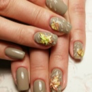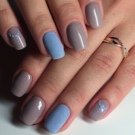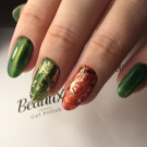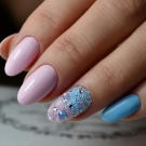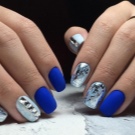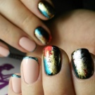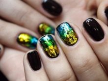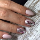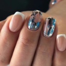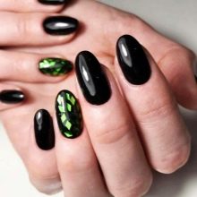 Knust glas - Denne teknik er allerede vokset med en hær af fans. Den er baseret på brugen af en speciel manikyrfilm, der skæres i små stykker og derefter limes på accentnagler. Effekten og lysstyrken af designet afhænger af farven på gelpolveret: på lette belægninger ser “glasset” blødere ud, det gør mørke nuancer især elegante, hvilket ændrer formen for manikyren.