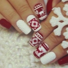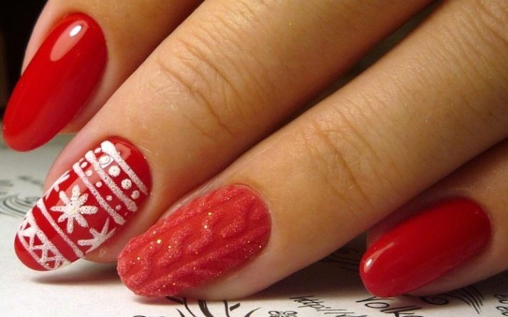 Hvis en kvinde har ferie om vinteren, kan du give fantasien frie tøyler og tegne julelegetøj på neglene. Dette er en fantastisk mulighed for at muntre dig selv og føle atmosfæren i den kommende ferie. Derudover kan du bruge flokpulver, hvilket er bedre end andre neglematerialer kan formidle strukturen af julesokker og filtlegetøj. Hun kan skelne og grangrene på en manikyrs accentnagler.