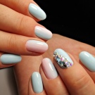 Opvågning af naturen kan være præget af forskellige mønstre på accent neglene i forår manikyr. Disse smelter istapper og de første fugle skyhøje mod himlen. I marts kan du dekorere designet med tidlige blomster. Snowdrops på baggrund af den smeltende jord vil se meget smuk og passende ud til denne sæson.