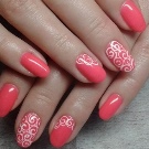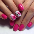 Du kan ikke rabat lyserøde toner. Det er nødvendigvis blødt lyserødt, lyserødt syrin, hindbærrosa nuancer og fuchsia. På samme tid er den megapopulære kontrast af lyserød grå eller sølv. En kombination af lyserød og blå er blevet en hit-trend. Af palettens varme farver er lyse orange, fersken, fløde, mørkerøde, saftige gule farver relevante. Konsistensen af lakken kan være enten mat eller blank, perlescent, gelé, temperatur, kamæleon, magnetisk.