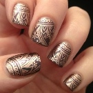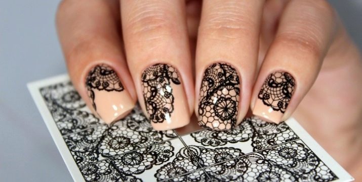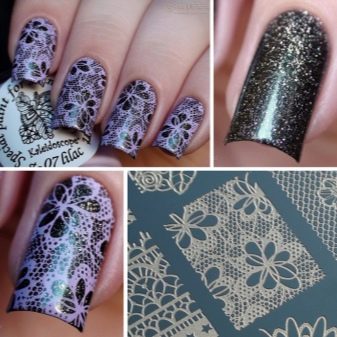 Stempling. Stempling med overførsel af mønsteret kan reducere tiden betydeligt for en klar og præcis tegning. For at gøre dette har vi brug for plader med et indgraveret mønster, gelpolver, en skraber og en rulle, gennem hvilket trykket overføres fra pladen til neglen. Teknikken er ganske praktisk, selvom den kræver nøjagtighed. Mønstre kan males, sølvfarvede, dækkes med forgyldning ovenfra.