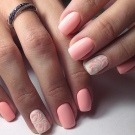 Hvad angår selve designet eller designet af accenter, vil dets tema holde sig til udnævnelsen af manikyr og sæsonbestemmelse.Det andet aspekt er især vigtigt, fordi design, der hører til en bestemt tid af året, i dag betragtes som en af de førende tendenser inden for negelmode. Hvis vi overvejer tegninger oprettet for hånd, er de mest populære muligheder i dag blonder og monogrammer. De giver os mulighed for at påpege elegansen og raffinementet i det kvindelige sæt.