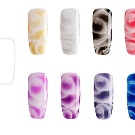 Spredning gel gelægemidler optrådte på mode Olympus for nylig, men i dag er de allerede blevet testet af fagfolk inden for neglekunst og er meget værdsatte af studiemestere. Dette design er baseret på klassikere. På monofonisk grundlag påføres strimler med en børste, som straks begynder at sprede sig. Når du blander farver, kan du få smarte overløb af toner. Design med lak med spredningseffekt oprettes meget hurtigt: det tager fra et par sekunder til et par minutter med maling.