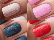 Pulver. Det er vanskeligt ikke at gå tabt i det rige sortiment af akrylpulvere til manikyr. Det kendetegnes ved en brøkdel af partikler, tilstedeværelsen eller fraværet af nacre, kan skabe ikke kun en usædvanlig baggrund, men også et voluminøst mønster. For eksempel kan dette pulver blive grundlaget for at skabe strikkede mønstre til tekstur i en trøje. Hun kan dryses med en gelpåført tegning, sand kan tilføjes volumen med snefnug, krøller, monogrammer.