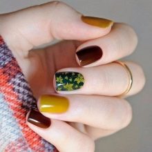 Hvis du nøje overvåger arbejdet med fagfolk inden for neglekunst, kan du i deres arbejde finde en masse friske ideer. For nylig var efterårsblade en prioritet, som kunne dekorere accenterne i efterårets manikyr.