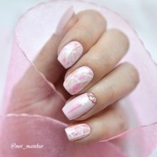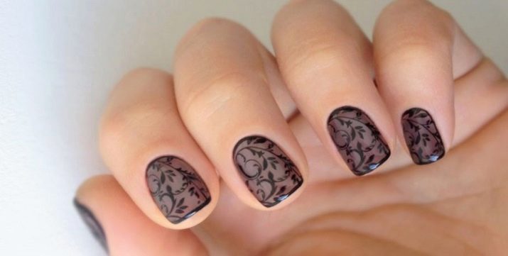 Overfør folie. Dette materiale er relativt frisk, det er et foliebånd med et mønster påført det. Materiale transporteres ved hjælp af et specielt klæbemiddel til hvid folie, som bliver gennemsigtig, når det tørrer. Indretningen er praktisk og let at bruge, har en masse tematiske mønstre, og derfor kan du vælge indstillingen, selv for den mest krævende kvinde i hendes præferencer.